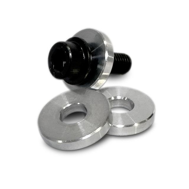 スライドマウントのアッパーとベースを固定する際に使用するカラーです。 外径28mm, 高さ5mm, M10ボルトに対応しています。